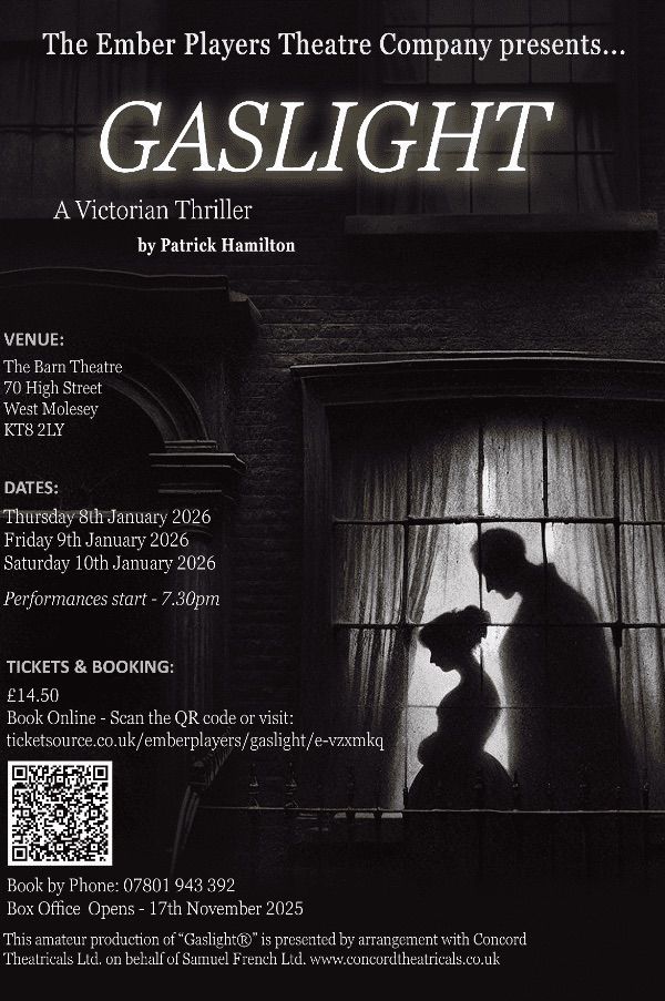 Ember Players Theatre Company brings Patrick Hamilton’s "Gaslight" to the stage - a tense and atmospheric thriller set in a dreary Victorian London townhouse, worn by time and heavy with secrets. Inside, a husband’s cruel manipulation and relentless control begins to break down his wife’s sense of reality, leading to a chilling struggle for truth and survival. First performed in 1938, "Gaslight" remains as compelling and unsettling as ever, shining a light on trust, power, and the fragile boundaries of the mind